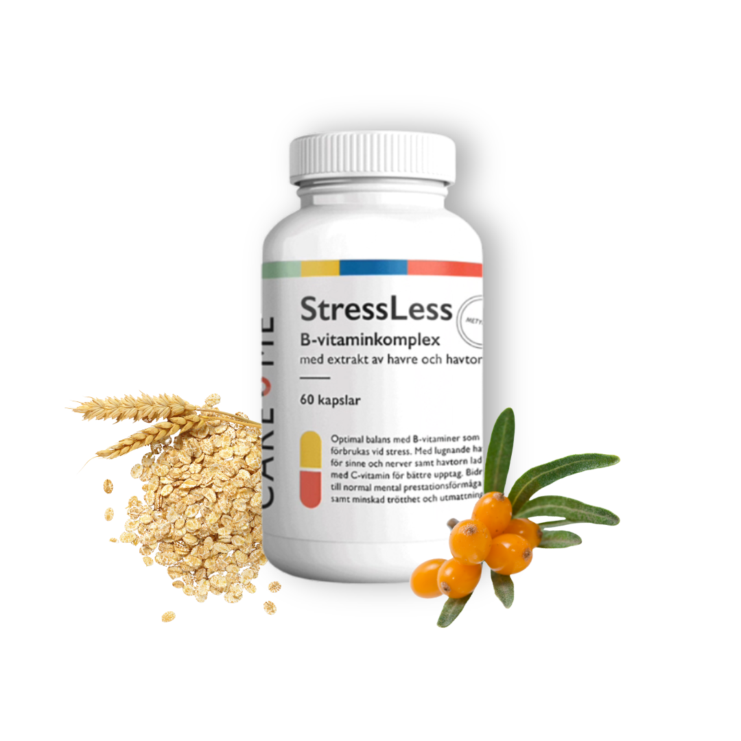 StressLess är ditt dagliga stöd för skärpa, stabilitet och mental energi. Ett smart kosttillskott laddat med aktiva B-vitaminer, närande havreextrakt, C-vitaminrik havtorn och solroslecitin – i en enda kapsel.